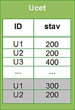 Než došlo k připsání peněz na účet U2 tabulka se zálohovala a v záloze teď chybí 100Kč.