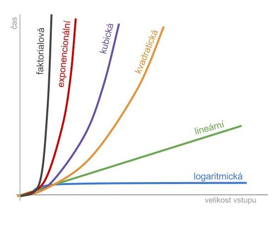 Jak je vidět na obrázku logaritmická složitost patří mez nejlepší, zatímco exponenciální, či faktorialová složitost je pro algoritmy zpracovávající větší vstupy neúnosná.