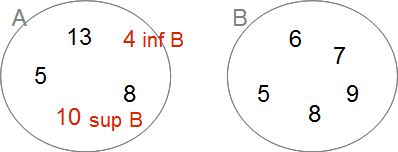 Infimum množiny B (inf B) - je největší prvek, který je však pořád menší než prvky množíny B.
