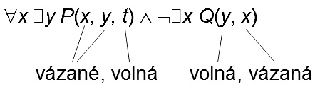 Volné proměnné jsou ty, které nejsou spjaty s kvantifikátorem, zatímco vázané jsou.